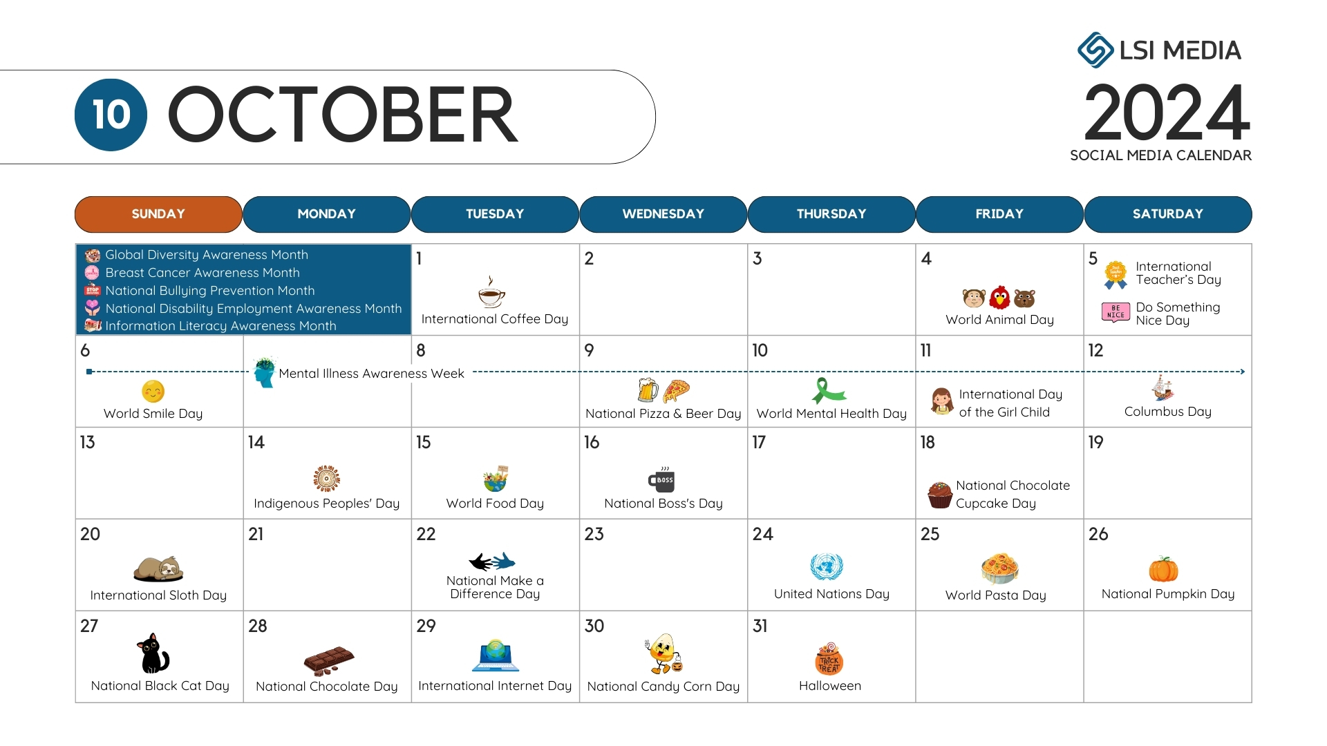 October is here, bringing a delightful mix of spooky thrills and cozy feels. Don’t let your social media strategy fall into a cobweb-covered corner! LSI Media is your trusty sidekick, armed with a FREE October 2024 Social Media Strategy Calendar that’s packed with tricks, treats, and timely topics to keep your audience bewitched all month long.